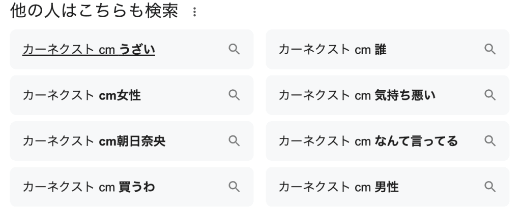 よく見かけるカーネクストのCMですが検索結果には「うざい」「気持ち悪い」などのワードも見られ、賛否あるようです。