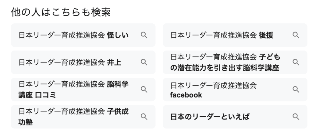 実際に、「日本リーダー育成推進協会」と検索すると「宗教」と表示されるため、宗教との関連を感じている人が一定数いると思われます。